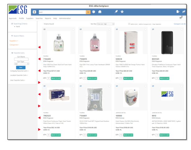 - A recent poll by The Hackett Group showed that “ease of learning” and “ease of search/finding what I am looking to purchase” are the two greatest drivers in user adoption of a purchasing catalog platform. ESG offers a user-friendly “Amazon-like” ordering experience for easy transactions that lead to an increase in just minutes.